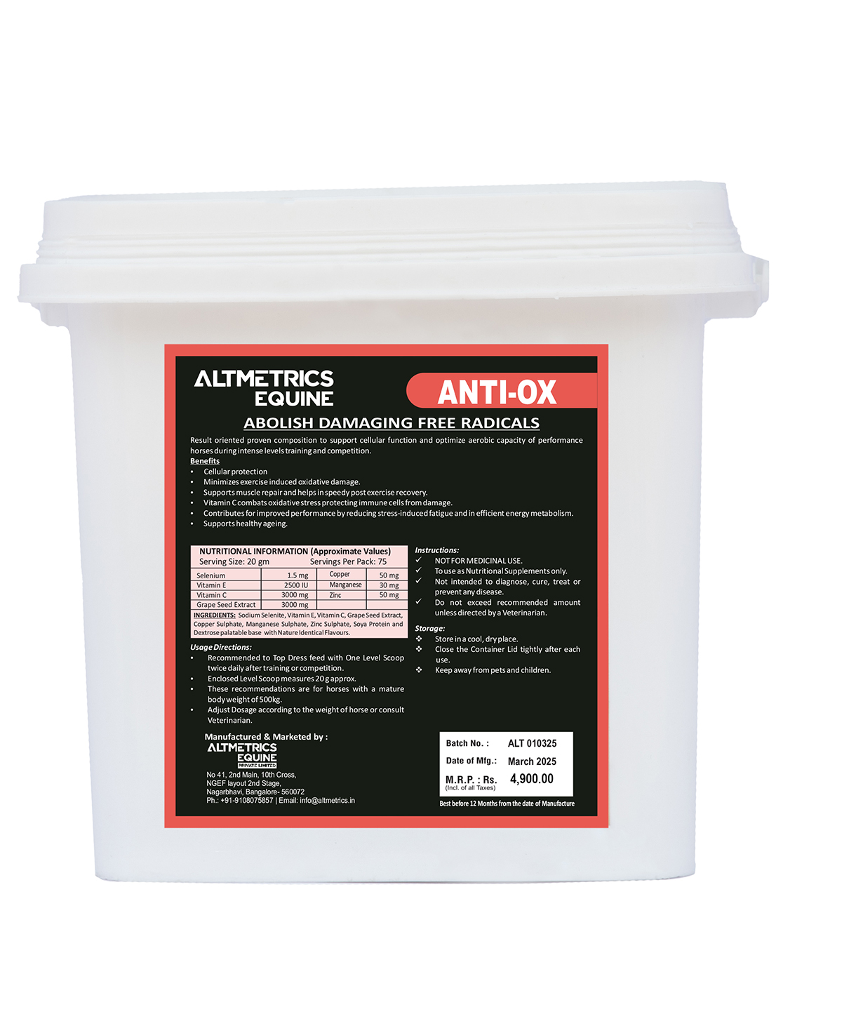 - Recommended to Top Dress feed with One Level Scoop twice daily after training or competition.